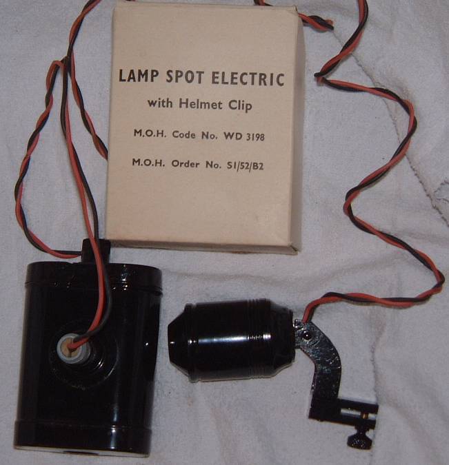 Helmet lamp used by the rescue service it was attached to the steel helmet rim to give a shaft of light wile searching bombed out buildings so keeping their hands free to work.