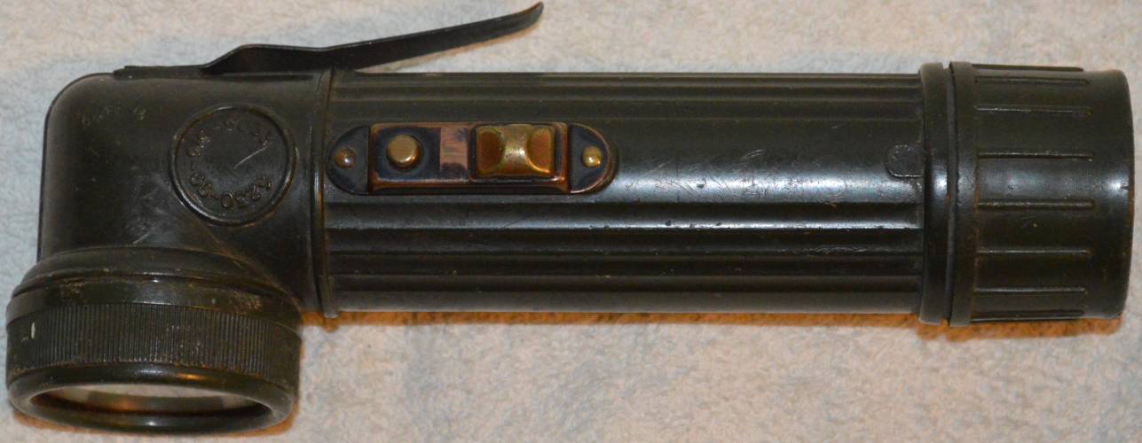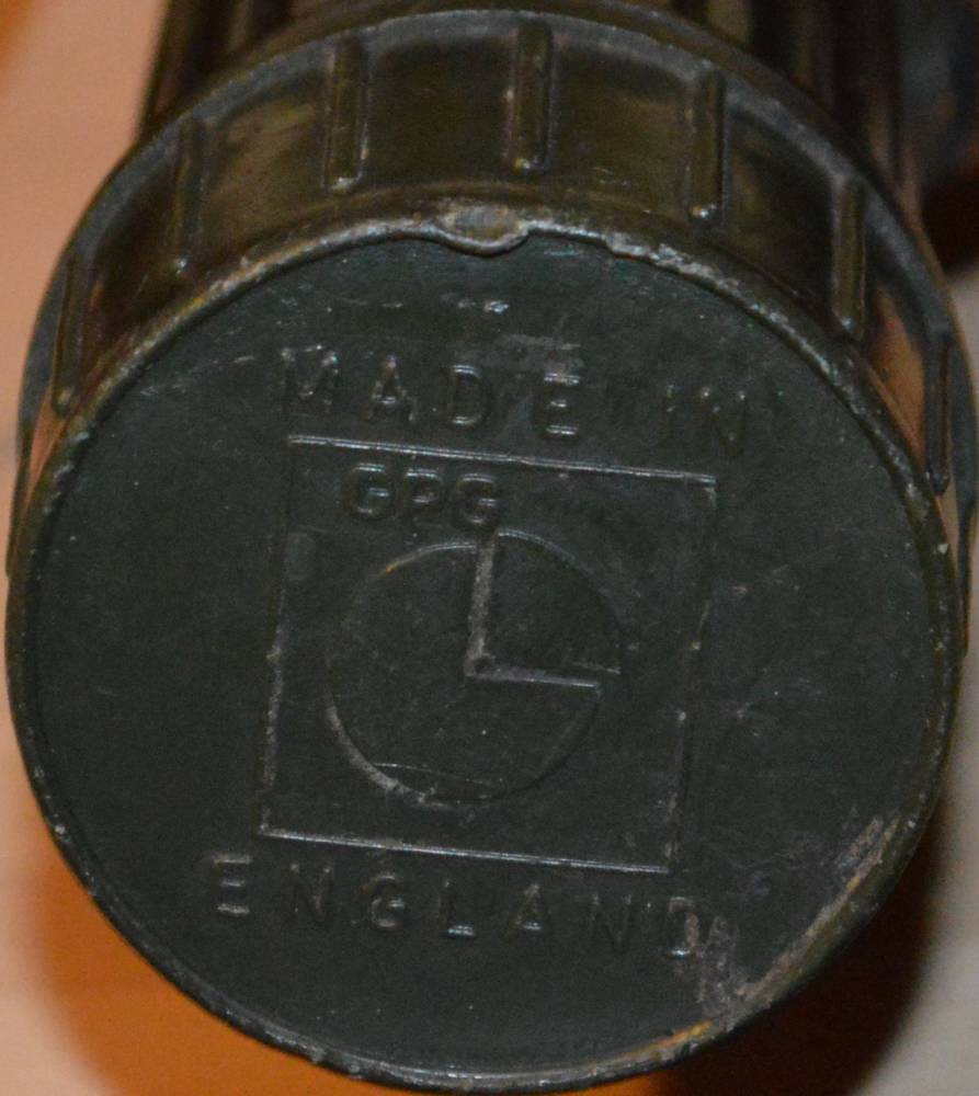 TL-122 type torch. The US army developed this type of torch in the 1930’s and used them extensively during the Second World War. As is often the case, the flashlights became torches as they were adopted by the British Army and other NATO forces. The makers mark is shown on the bottom and the numbers on the side are its NATO designation; I believe it went out of service in the 1970’s. |