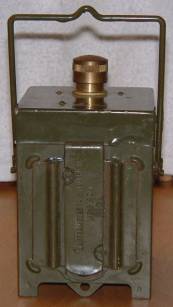 to artillery gun crews so they could sight their gun at night. The lamps would be placed on posts and the angle of the gun barrel to the lamp would be determined. Then when a bearing was required the gun layer could use a lamp's position as a known bearing. Made by T.E Bladon and Sons dated 1942. |