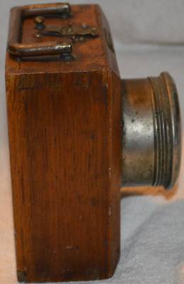 WW1 BRITISH ARMY OFFICERS WOODEN BATTERY LAMP. This simple lamp consists of a wooden box with a lens, bulb and handle.