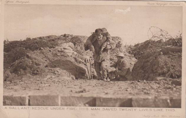 The card above second one on the right has some interesting writing on the back, "Corporal Sandall, Bugler A Payne they are both here now but we worked in the trenches together in France". Note the pattern 1914 belts.The third postcard of the Saint Johns Ambulance man has written on the back " Dennis 1918. Note the general sevice Mk.11 water bottle carrier which was still being used in WW11 by Saint Johns Ambulance. |