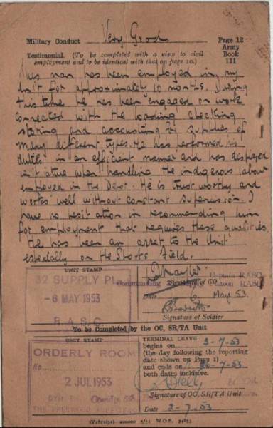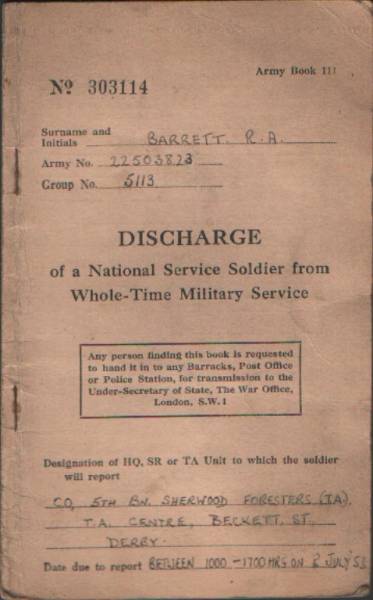R.A Barrett discharge papers Korean war. |