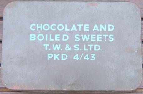 Chocolate and boiled sweet ration tin dated 1943 the dimensions are five and a