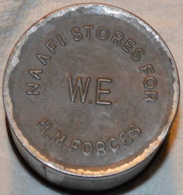 NAAFI TIN. Three inches tall with cardboard liner, possibly for cigarettes.