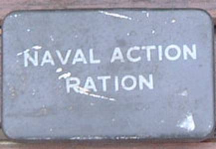 Navel action ration tin undated and much smaller than the previous tin at two inches from top to bottom,