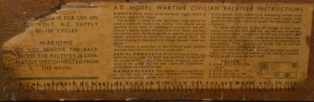 allowed approximately forty manufacturers to to build one basic style radio the war time civilian receiver.