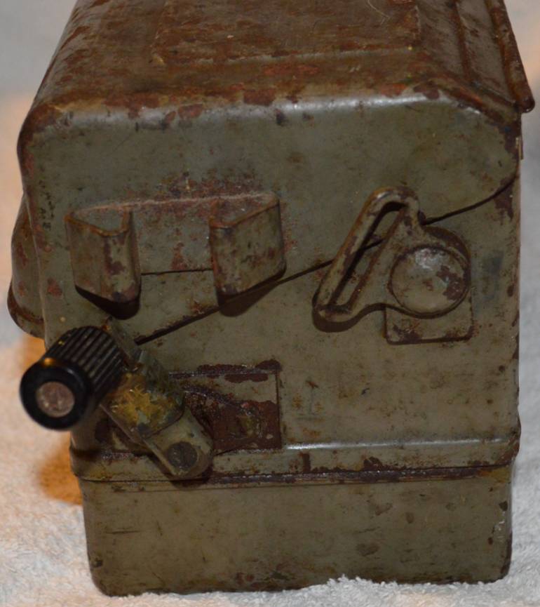 Field Telephone H Mark 111. Designed to provide secure wire communications on the front lines, with a hand cranked magneto generator to "ring up" the other party, instructions on the inner lid