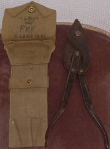 Wire cutters and pouch. The pouch is dated 1945 the wire cutters dated 1944.