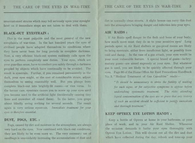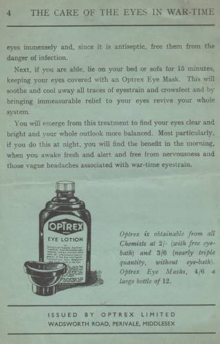 The care of the eyes in war time by Obtrex. Undated four page leaflet. |