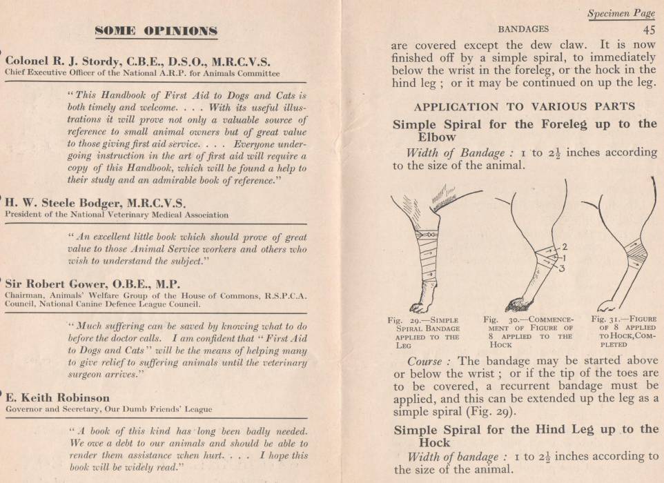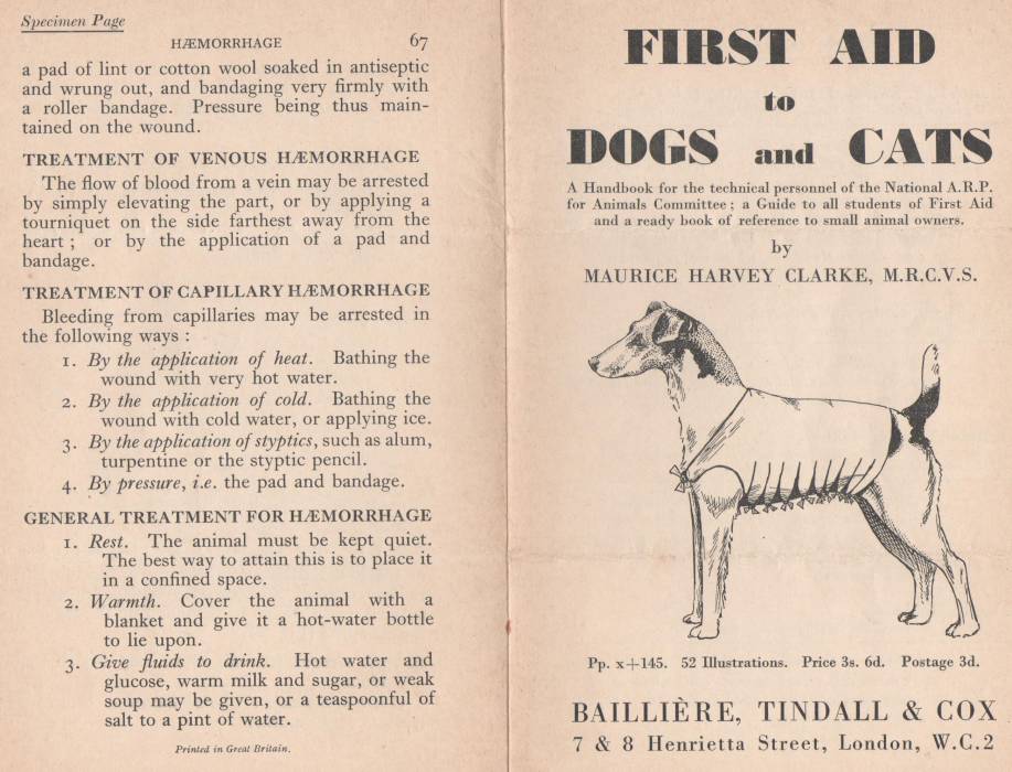 Advertisement leaflet for a A.R.P. First Aid book for Cats and Dogs. |