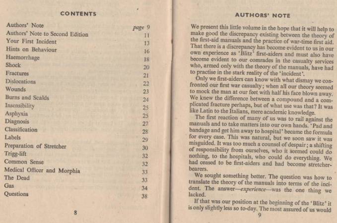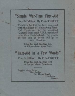 First Aid in Air Raids. A 63 page book for basic First Aid in war time. Dated 1942. |