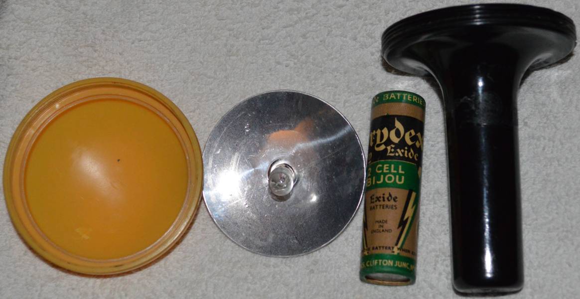 Blackout Darning Mushroom made by R.E.D. Called the Darn-a-lite, it had a battery in the Bakelite stem and a small bulb and reflector inside to illuminate the top.