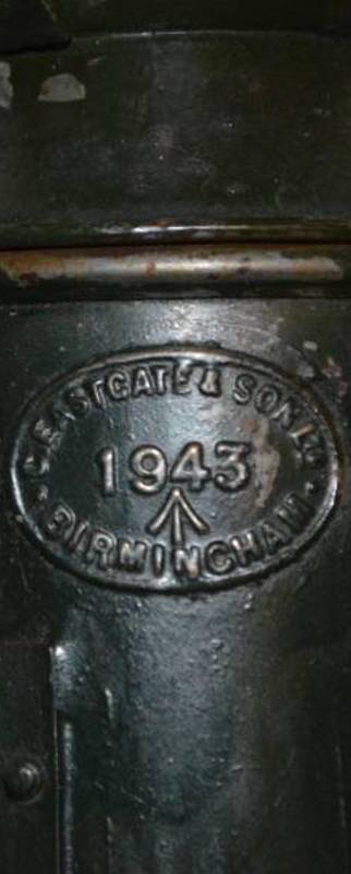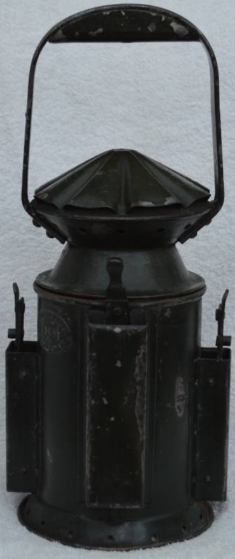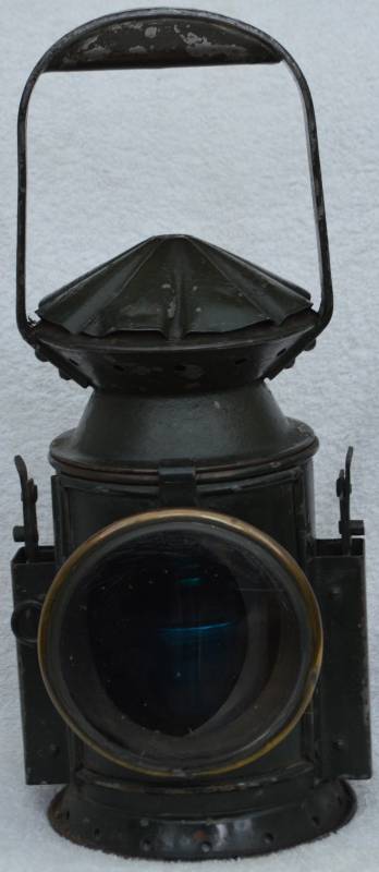 WWII British Military Railway Signal Oil Lamp. Dated 1943. Made by C. Eastgate and son Birmingham. With internal rotating coloured glass lenses. |