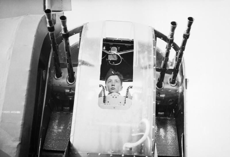 . The rear gun turret in the picture showing the Gun Sight is on a Wellington Bomber.