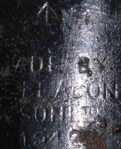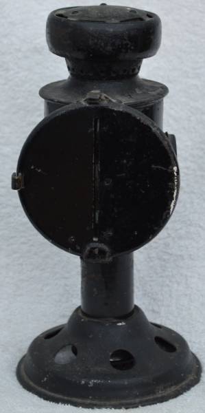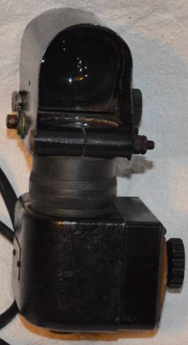 to artillery gun crews so they could sight their gun at night. The lamps would be placed on posts and the angle of the gun barrel to the lamp would be determined. Then when a bearing was required the gun layer could use a lamp's position as a known bearing. Made by T.E Bladon and Sons dated 1942. |
