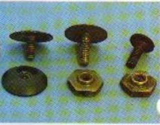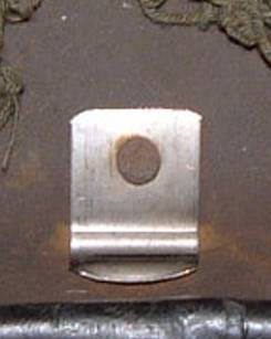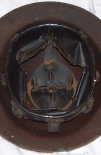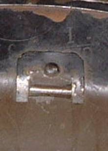 Back rim, one hole in the crown to accept the head liner retaining brass screw and one hole on each side to rivet the chin strap fixings