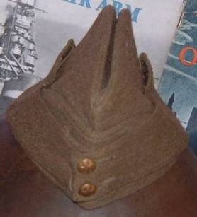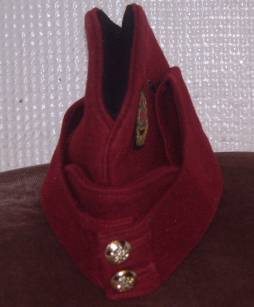 The field service cap or side cap was introduced in line Infantry (other than Scottish regiments) from 1893. The first pattern of the caps were green for Light Infantry and Rifles and blue for other regiments it replaced the glengarry and was adopted as a "walking out" headdress by the Infantry, the rest of the army used it for field training, retaining the pill box forage cap for "walking out".