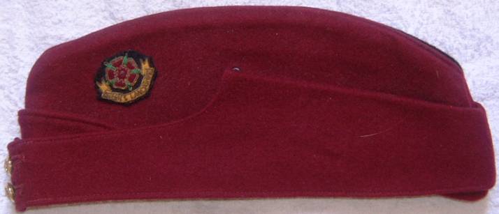 Officers Queens Lancashire side cap with cloth badge. |