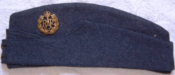 WW11 R.A.F side cap with badge. Thanks to Wilfred Wilson for donating his old cap to my collection. |