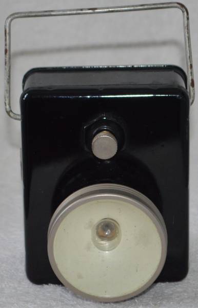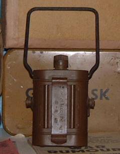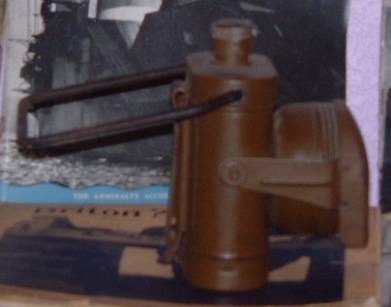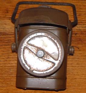 Helmet lamp used by the rescue service it was attached to the steel helmet rim to give a shaft of light wile searching bombed out buildings so keeping their hands free to work.
