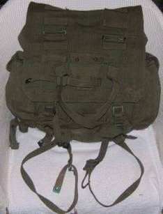 Note the single buckle closure ,carrying handle and suspension buckles that allowed the haversack to