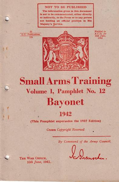 SMALL ARMS TRAINING Volume 1, Pamphlet No.12 Bayonet. A 15 page pamphlet dated 1942. |