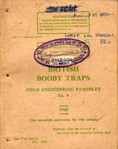 British Booby Traps Field Engineering Pamphlet No 9. Dated 1943 a 59 page booklet showing all aspects of British booby traps from anti personnel to anti vehicle. |