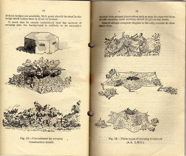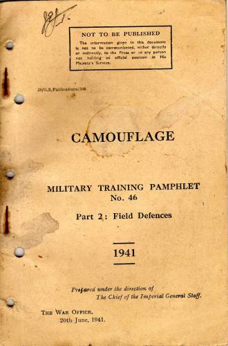 Camouflage training pamphlet No 42 part 2 field defences. a 35 page pamphlet dated 1941 showing how to camouflage pill box's and all types of defensive positions. |