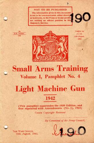 1948. Reprinted with amendments 1953. A84 page book covering all aspects of training for the Bren Gun. |