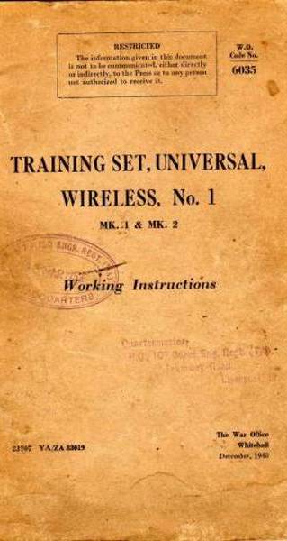 working instruction's. Stamped for the 107 Corps Engineering Regiment [TA]. |