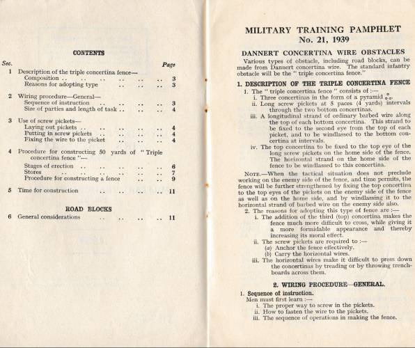 Military training pamphlet No21. Dannert concertina wire obstacles. Dated 1939. A 12 page