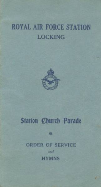 A hymn booklet from RAF Locking. RAF Locking was opened as a training unit in 1937.The Technical Site of RAF Locking was the home of the RAF's No.1 Radio School, until its relocation in 1999 to RAF Cosford. |