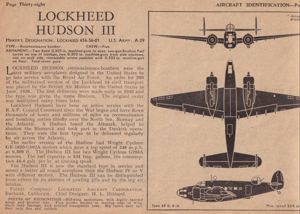 Aircraft Identification part four, American Monoplans with the RAF dated 1942 with 65 pages.