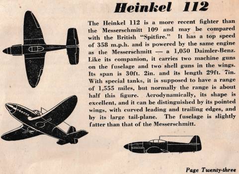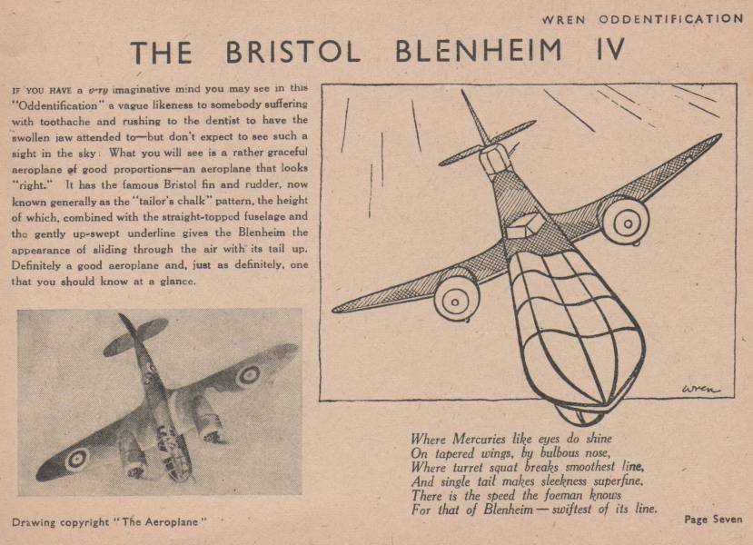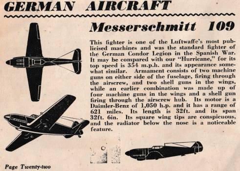 drawings and descriptions of twenty-seven British and German aircraft. Undated but probably early war given the aircraft shown.