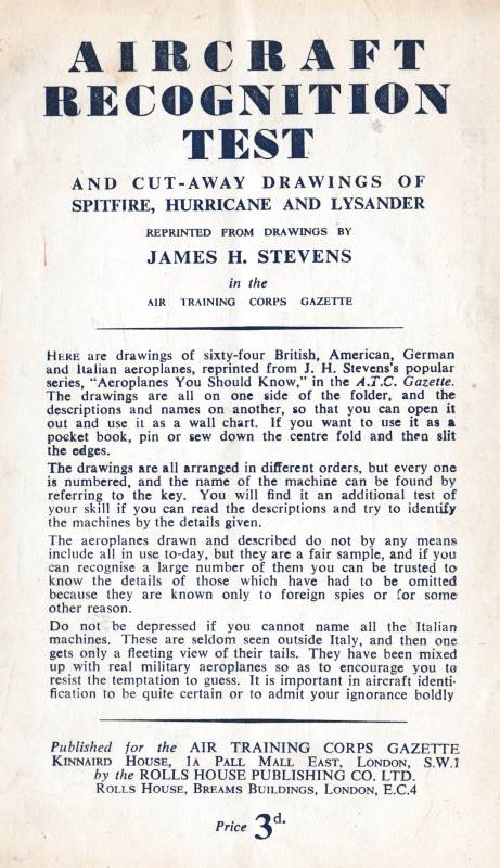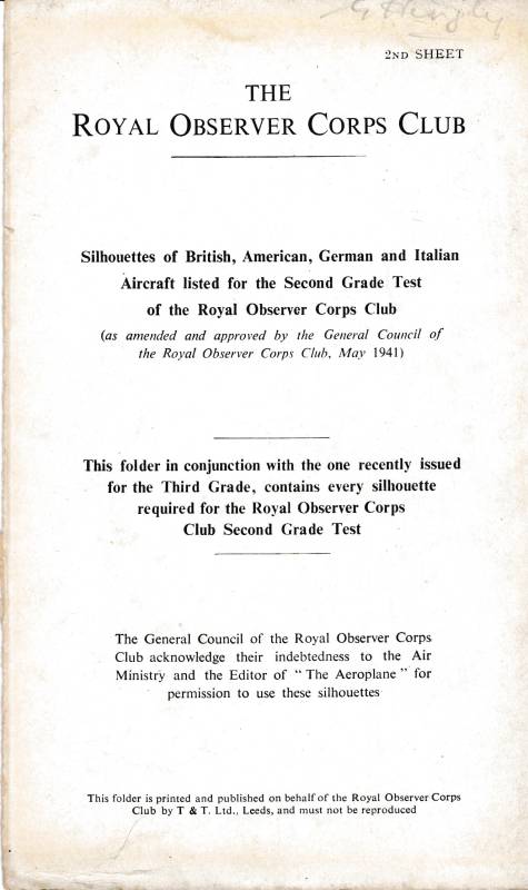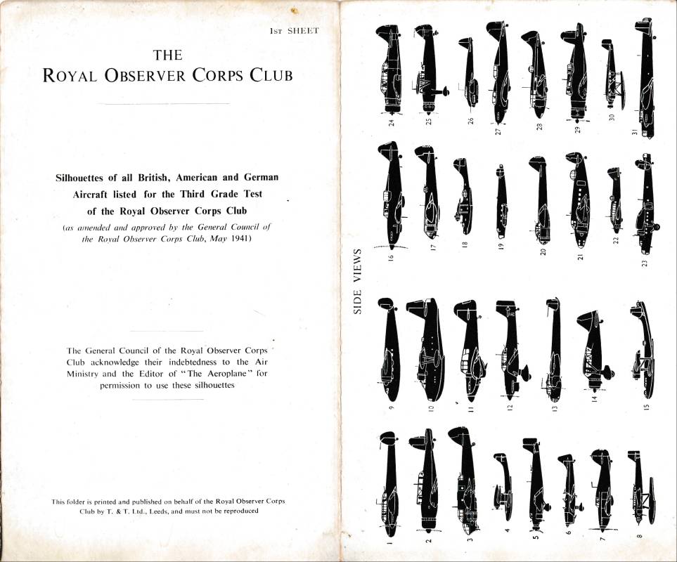Royal Observer Corps Aircraft recognition test fold up sheets dated 1941. The numbers on