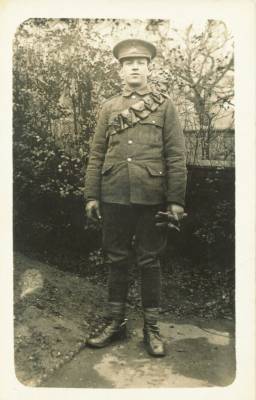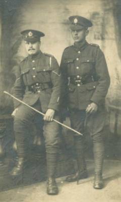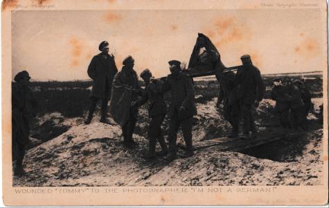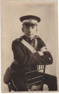 The card above second one on the right has some interesting writing on the back, "Corporal Sandall, Bugler A Payne they are both here now but we worked in the trenches together in France". Note the pattern 1914 belts.The third postcard of the Saint Johns Ambulance man has written on the back " Dennis 1918. Note the general sevice Mk.11 water bottle carrier which was still being used in WW11 by Saint Johns Ambulance. |