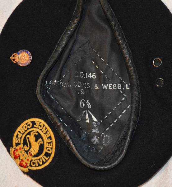 Civil defence beret. Unfortunately the date has worn off but it has a Kings crown so pre 1953. |
