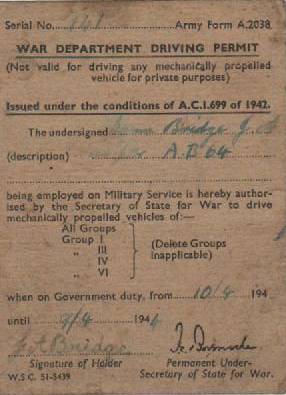 War department driving permit dated 1944.