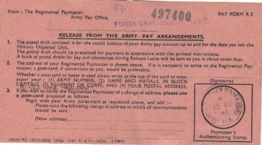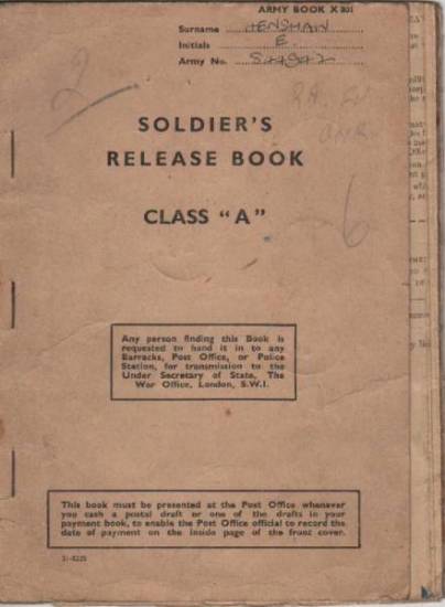 Release papers and Pay book with associated paperwork