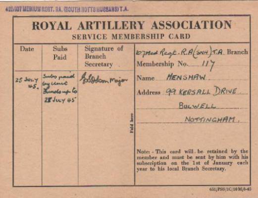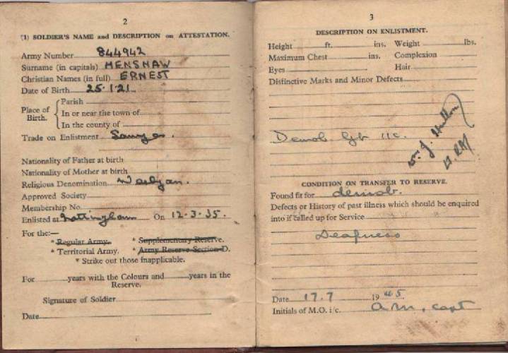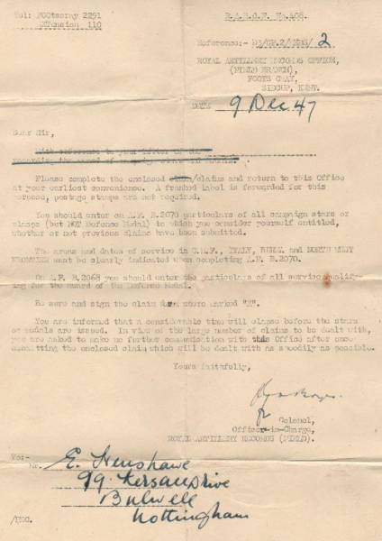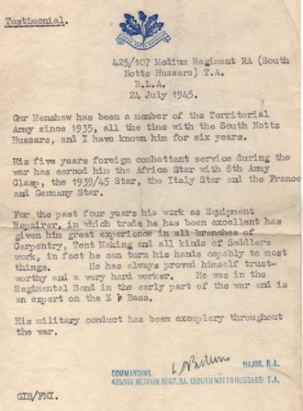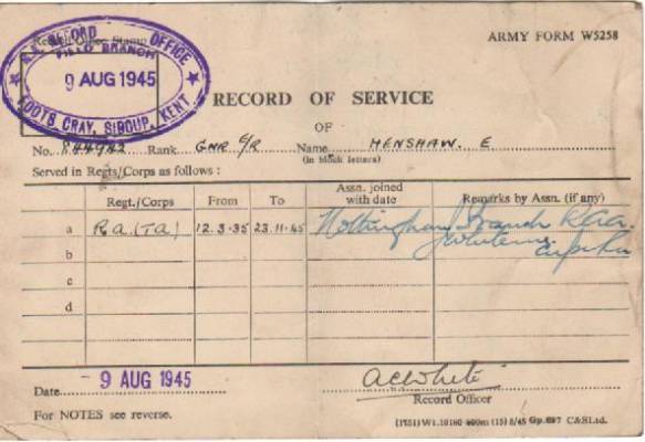 South Notts Hussars Yeomanry Royal Artillery TA in 1935. As you can see from his paperwork