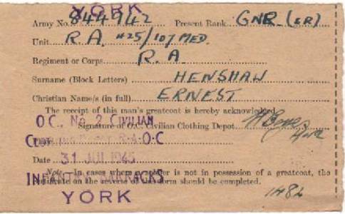 that came with it to 844942 GNR (ER) Ernest Henshaw. He joined the
