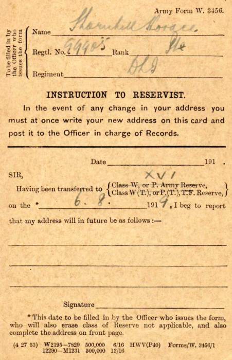 certificate a change of address notification card for the reservist and a disabled soldiers handbook